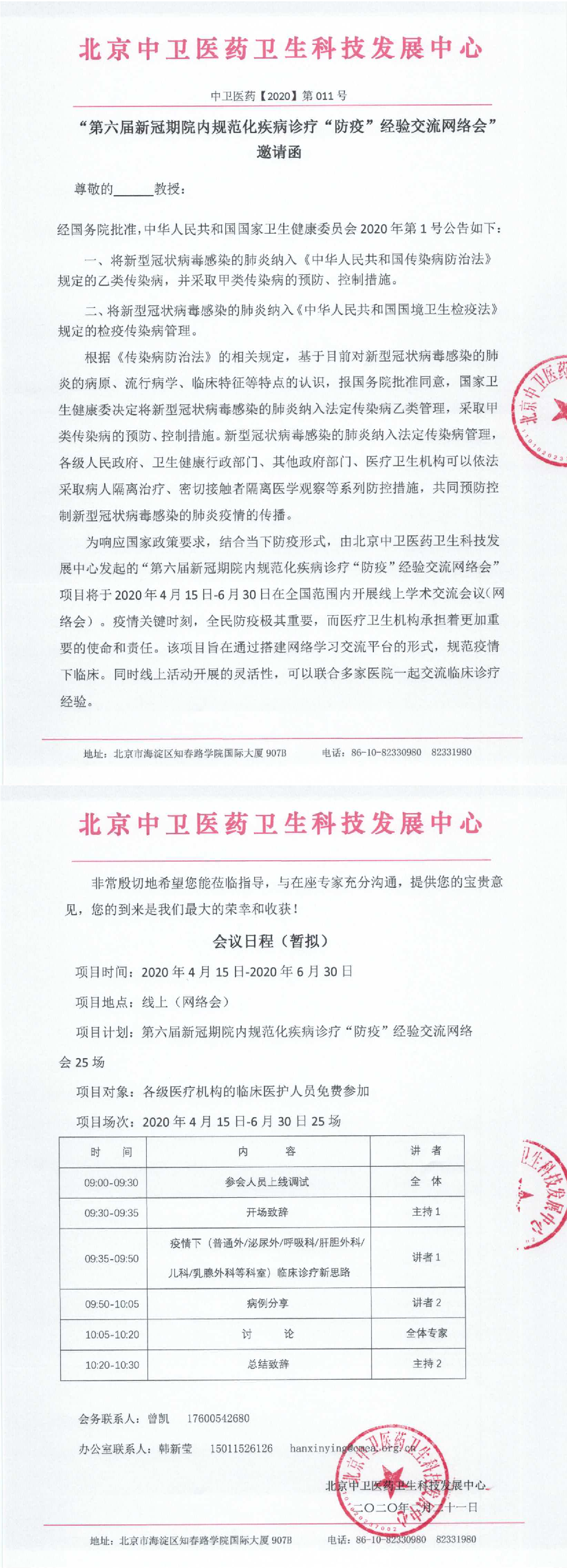 | “第六届新冠期院内规范化疾病诊疗“防疫”经验交流网络会”邀请函 | |||||