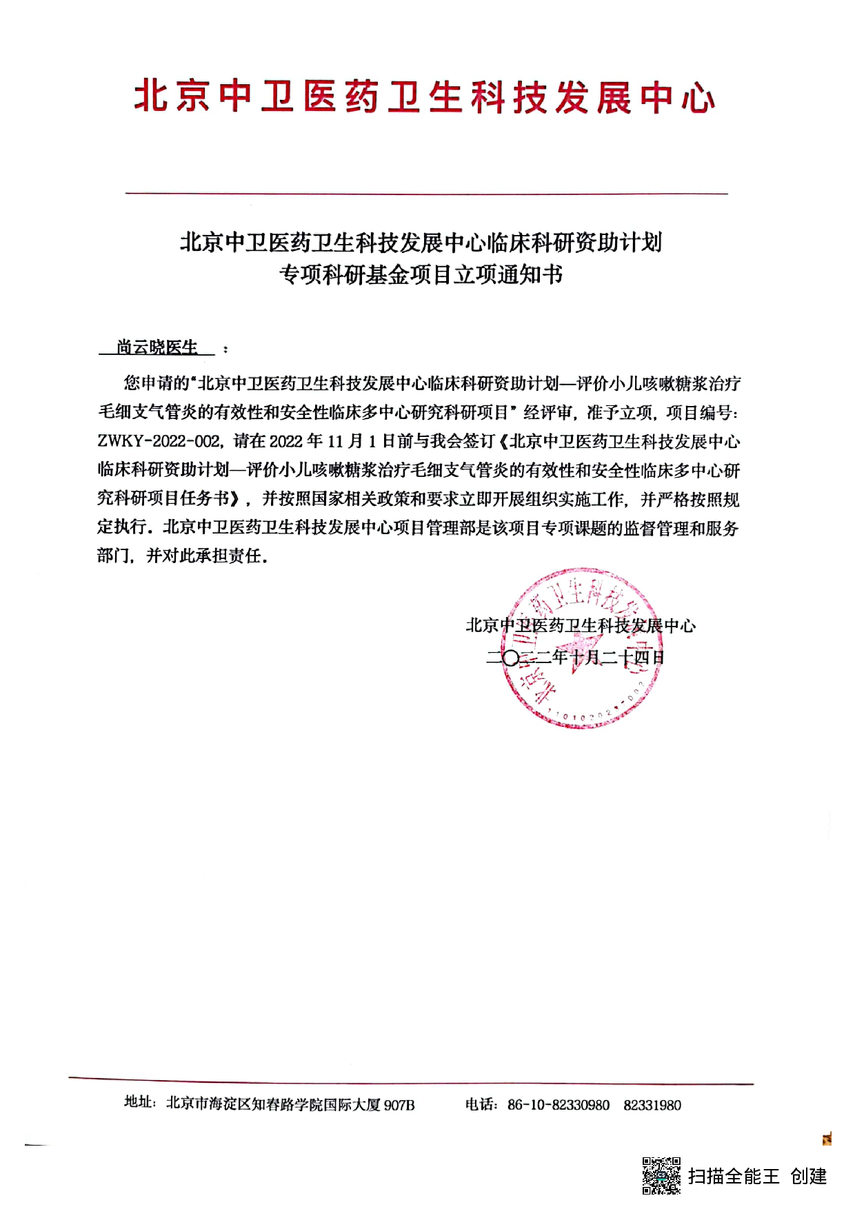 上一篇:北京中卫医药卫生科技发展中心临床科研资助计划 专项科研基金项目立项通知书 |
